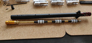 Obviamente, no la aprietes demasiado o aplastarás el cañón interior. Simplemente hazlo hasta que ya no puedas moverlo. No seas un idiota y te balancees con una barra de 60 cm. Probablemente solo se necesiten unas 4 vueltas (mira las fotos). La tuerca de ambos es de 15 mm, así que necesitarás dos llaves inglesas o ajustables para apretar la abrazadera sin girar la tuerca principal.