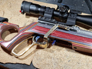 - トリガーにほこりが入らないようにセミオートで使用したい場合は、レバーを外すときに安全ピボット穴を塞ぐためのオプションのゴム製ブランキングバンジを使用します。