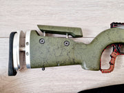まず、この銘柄は希少な500ドルのベルだ &カールソン「オデッセイ」ターゲットストック。バットとチークライザーに3段階の調整機能付き。オリーブグリーンとブラックのスパイダーウェブパターン。このストックはアメリカから特別に輸入されており、英国では入手不可能です。