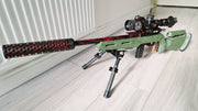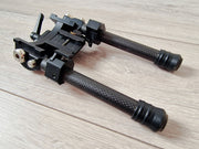 このビルドには、オプションで高品質のカーボンバイポッドが同梱されており、このページ上部のドロップダウンメニューから選択できます。このバイポッドは、このストックにかなり長い間使用しており、Bのずんぐりとしたスタイルによく合っています。&Cストックを搭載し、非常に安定感があり、射撃に適したプラットフォームを提供します。超遠距離射撃を行う場合は、バイポッドの使用を強くお勧めします。