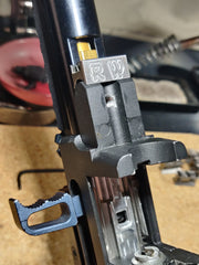 KC-02의 부품 #025를 교체합니다. 이 부품은 외부 배럴을 리시버에 단단히 고정하는 V 블록 클램프입니다.