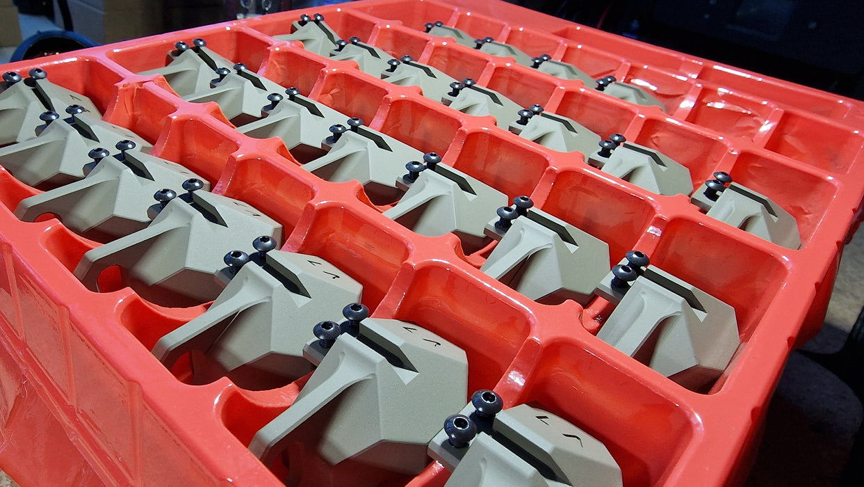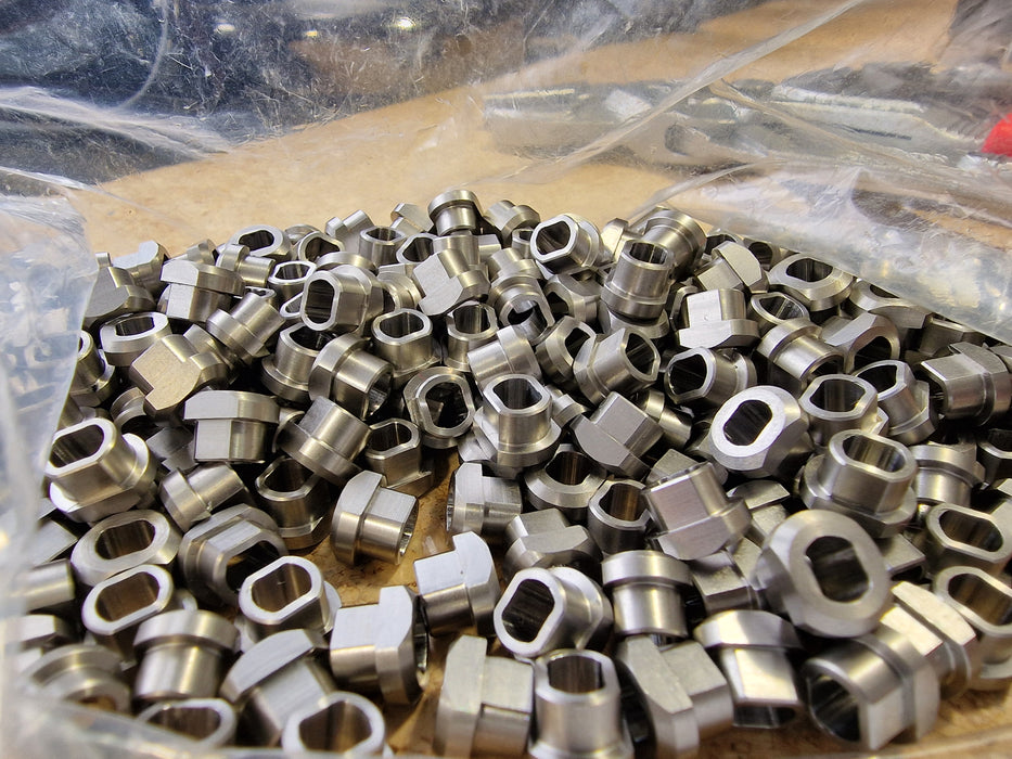 - Pozostałe małe części - klin i blokada - są również obrabiane CNC z aluminium 6061 i w razie potrzeby pokrywane cerakotą.