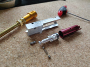 • Легкая разборка/сборкаБольше не нужно забивать и выбивать этот прочный цилиндрический штифт, чтобы извлечь поршень и сопло из затворной рамы. Конструкция V14 теперь оснащена прочным стальным штифтом, который удерживается шариковым фиксатором. Просто выдвиньте штифт сбоку любым инструментом на 3 мм, например, отвёрткой или шестигранным ключом, чтобы разобрать, а затем вставьте его обратно, чтобы собрать. Шариковый фиксатор защёлкивается за считанные секунды, без необходимости ударов молотком, что обеспечивает быструю и лёгкую регулировку.