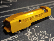 • Хвостовой кикер Hammer Spur. В 2016 году мы укоротили общую длину затворной рамы в стремлении снизить вес, не до конца осознавая последствия этого изменения. Очевидно, что конструкция имела оглушительный успех, поскольку из всех примерно 700 изготовленных затворных рам нам не вернули ни одной бракованной. Но теперь, спустя 5 лет, мы можем пересмотреть это решение, гораздо глубже понимая KC-02, особенно спусковой механизм, который тогда был для нас пугающим местом. Теперь мы понимаем, что момент срабатывания фиксатора ударника на нижней стороне затворной рамы специально настроен на длину затворной рамы, чтобы курок полностью взводился до прекращения подачи газа из магазина. Укоротив затворную раму, мы сделали механизм более зависимым от кинетической энергии, накопленной в затворной раме, что может быть ненадёжным в определённых условиях, поскольку потери на трение играют большую роль в этой области. Восстановив истинную длину затворной рамы в области, где она толкает курок вниз, мы можем гарантировать, что курок со щелчком вернется в исходное положение одновременно с возвратом в исходное положение затвора в исходное положение. TL:DR — шпора курка должна повысить надежность работы затворной рамы V14 на всех типах и конфигурациях газов KC-02.