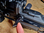 Detta fällbara laddningshandtag i stål är utformat för att ha precis tillräckligt med fäste i den räfflade framänden för att snabbt kunna lyfta upp den med ett finger för en snabb räckning och smäll, innan den automatiskt fjädrar platt mot sidan av pistolen igen. Det är ett utmärkt hjälpladdningshandtag som ger dig möjlighet att ladda om med båda händerna i knepiga situationer.